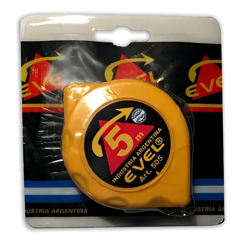 CINTA MÉTRICA DE 5 METROS CON FRENO PROFESIONAL RETROBLOK "EVEL" Cinta compacta, carcaza plástica de A.B.S., con enganche de acero para cinto. Hoja de acero de gran resistencia. Automática con freno. CARACTERÍSTICAS GENERALES - 5 mts - Industria Argentina. - Uso profesional - Fleje de acero 16 mm. - Enganche para cinto. - Con Freno