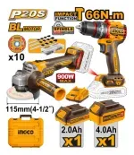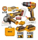 El Combo Kit Amoladora y Taladro Ingco 20v 2 Bat Maletín + Acc es la solución ideal para quienes buscan potencia y versatilidad en sus proyectos. Este conjunto incluye una amoladora y un taladro, ambos diseñados para ofrecer un rendimiento excepcional en diversas aplicaciones. Con dos baterías, una de 2Ah para el taladro y una de 4Ah para la amoladora, podrás trabajar sin interrupciones, asegurando que tus tareas se realicen de manera eficiente.