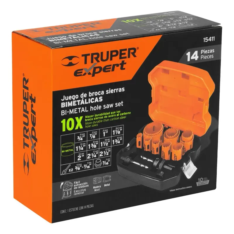 Mechas Sierra Copa Broca Set Juego 14 Pzs Truper Estuche