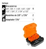 11 Brocasierras de diferentes tamaños: 3/4", 7/8", 1", 1-1/8", 1-1/4", 1-3/8", 1-1/2", 1-3/4", 2", 2-1/4" y 2-1/2".