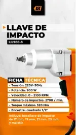 Con la llave de impacto eléctrico Lüsqtoff LIL900-8 podrás realizar múltiples tareas en diversas superficies de un modo práctico y sencillo. Su potencia de 900 W te ofrecerá gran capacidad de perforación.