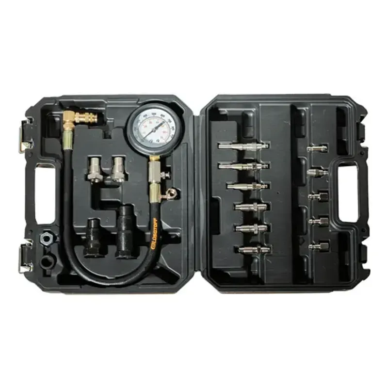 El Compresómetro Motores Diesel Kit 19 Piezas Lusqtoff es una herramienta esencial para cualquier mecánico o entusiasta del automovilismo, diseñada específicamente para motores diesel. Este kit incluye 8 adaptadores que garantizan compatibilidad con una amplia gama de vehículos, desde autos hasta camionetas, facilitando el acceso a espacios de difícil alcance gracias a su pieza angular. La manguera de 36 cm y los accesorios de acople rápido permiten llevar a cabo mediciones de manera rápida y eficiente. Además, cuenta con un sistema de reset integrado, lo que permite realizar mediciones repetidas sin la necesidad de desmontar. Este compresómetro, de la marca Lüsqtoff, ofrece calidad y performance en cada uso, siendo una opción confiable para aquellos que buscan precisión y durabilidad en sus herramientas de diagnóstico. Con su diseño ergonómico y funcional, es el compañero ideal para cualquier taller.