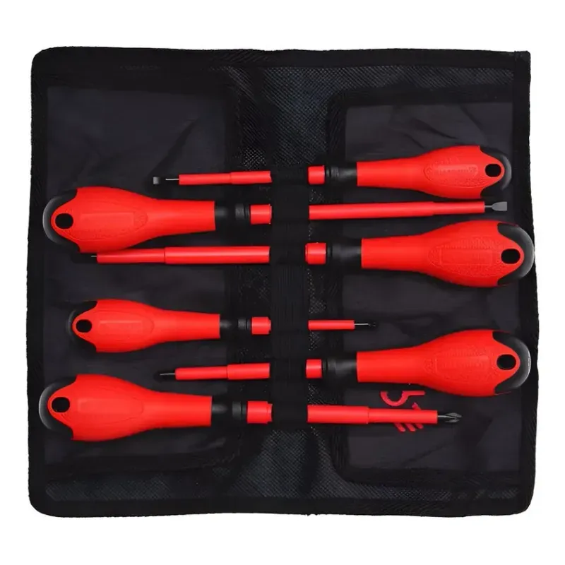 Set de 6 destornilladores aislados para trabajo eléctrico.