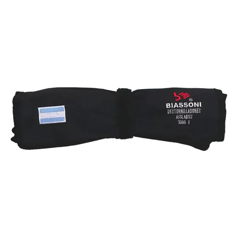El Set Biassoni 997717 incluye 6 destornilladores aislados hasta 1000V, con puntas PP y PH. Viene en un organizador enrollable de tela resistente, ideal para trabajos eléctricos seguros y profesionales.