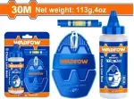 Este producto cuenta con un carrete de línea de tiza y un cuerpo de plástico resistente a los impactos. Incluye un gancho metálico de acero con dos opciones para facilitar el marcaje por una sola persona. El hilo es de algodón resistente y tiene una longitud de 30m.